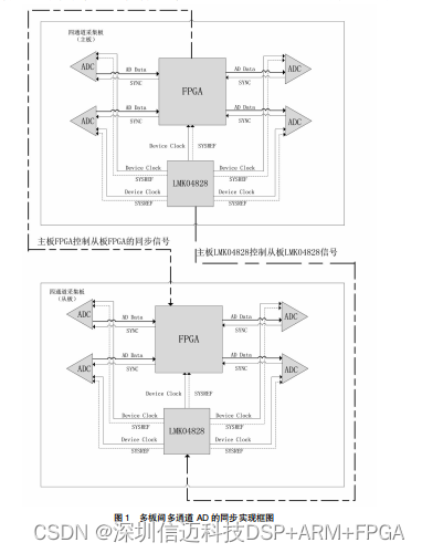 多板间多通道 AD 芯片的同步实现原理如图 1 所示。