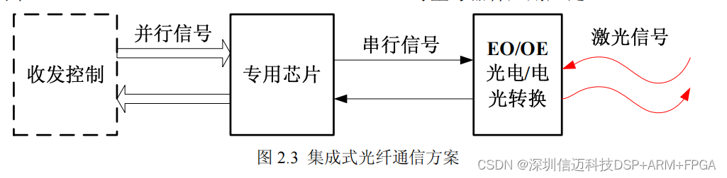 及光接收电路的方案,另外一种是使用专用芯片及模块将发射接收集成化的方案。下面