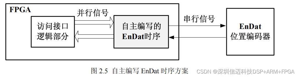 图 2.5 是自主编写 EnDat 时序解决方案的结构组成,从中可以看出与采用 MAZeT