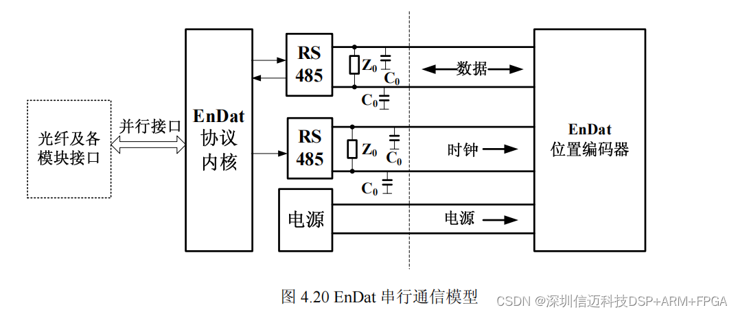 EnDat 协议内核的收发单元支持 RS-485 差分信号传输,数据传输与传感伺服控制系统
