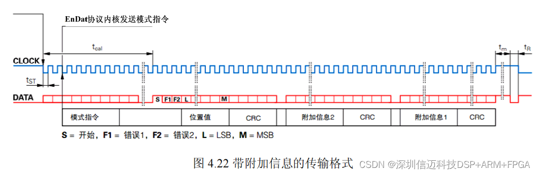 比特位。EnDat 协议内核在传输时钟的下降沿同步发送模式指令的每一位,而编码器则