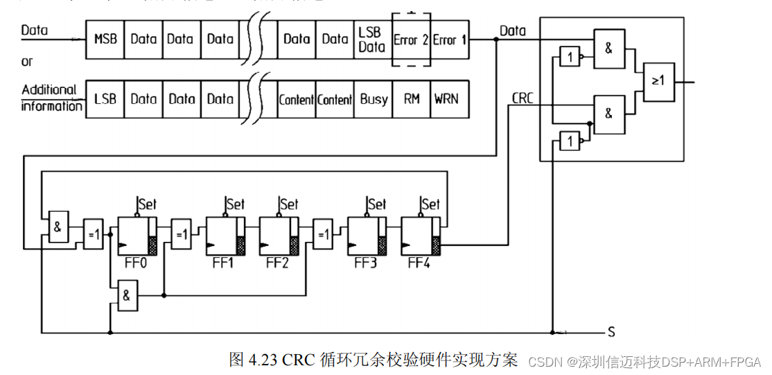 图 4.23[43]给出了编码器中 CRC 校验码的生成方案,因此,在本课题设计的 EnDat