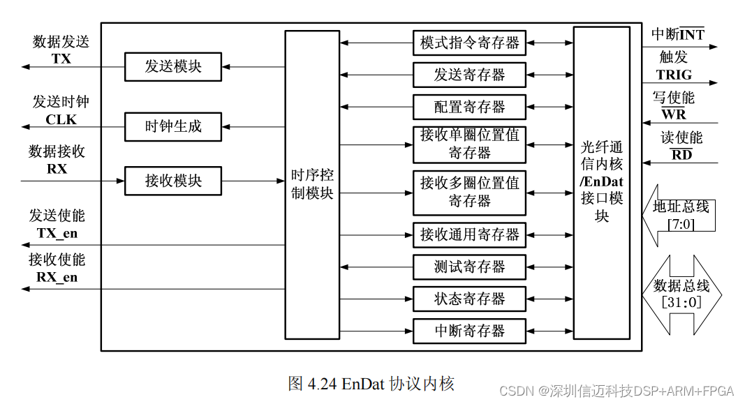 图 4.24[48,50]所示为 EnDat 协议内核的结构图,由时序控制模块、发送模块、接收模