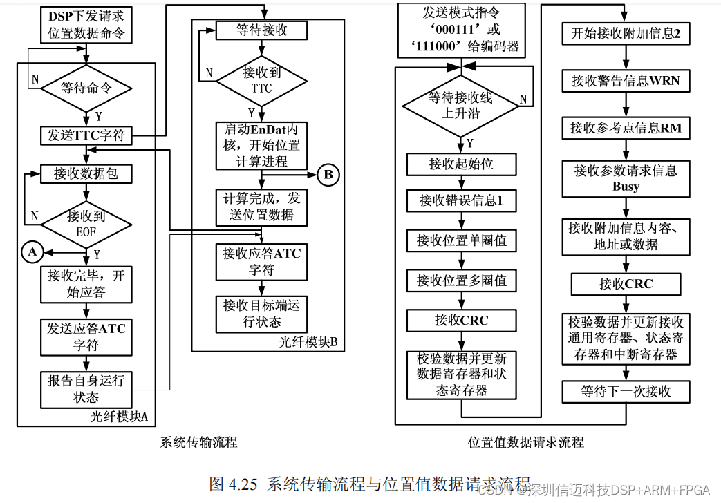 数据流的方向分为上行数据进程和下发数据进程。下发数据进程即 DSP 向 EnDat 内核