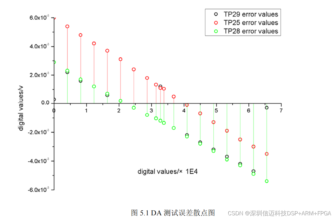 据图显示,DA 最大误差值在 0.006 左右,达到设计要求的 13 位精度,满足了设计预期。