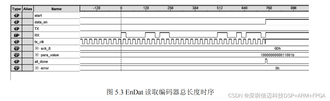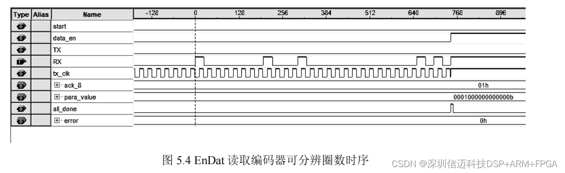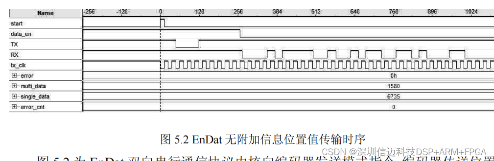 图 5.2 为 EnDat 双向串行通信协议内核向编码器发送模式指令:编码器传送位置值,