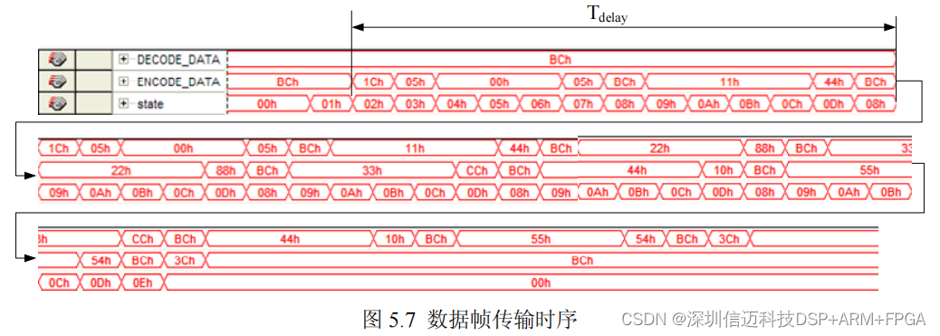 测试结果如图 5.7 所示,从中可以明确地看到数据在状态机的控制下按照图 4.14 的