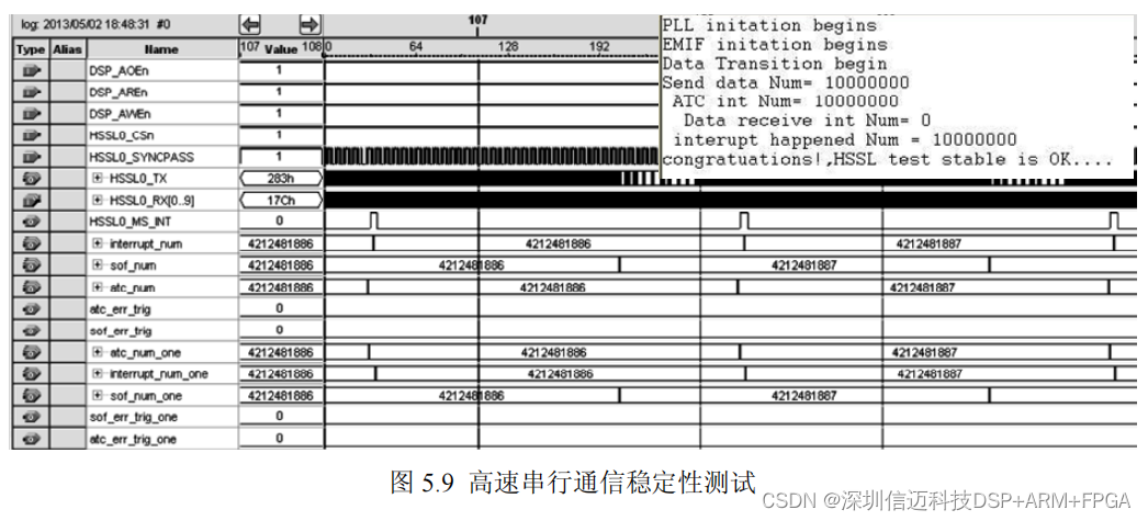 验证方法:采用 SignalTap II 在线逻辑分析仪对高速串行通信内核的传输时序进行