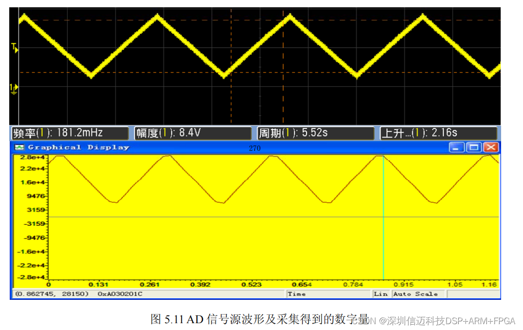 图 5.11 是测试结果,上面为信号发生器提供的模拟电压信号,下图为 Graph 图形窗