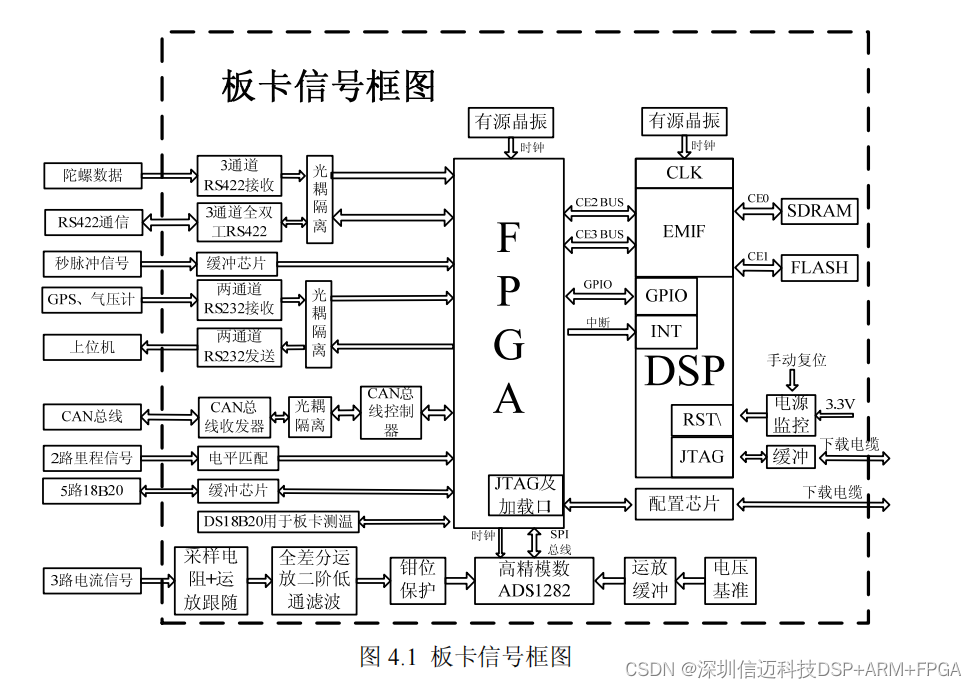 如图 4.1 所示是系统硬件系统的信号框图,数字信号处理板上的主要核心是