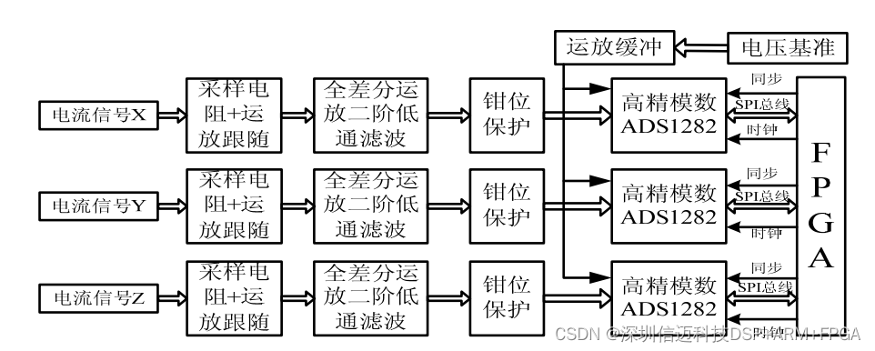 位保护后,直接输入到高精度的模数转换器的差分输入端。箝位保护由箝位二极