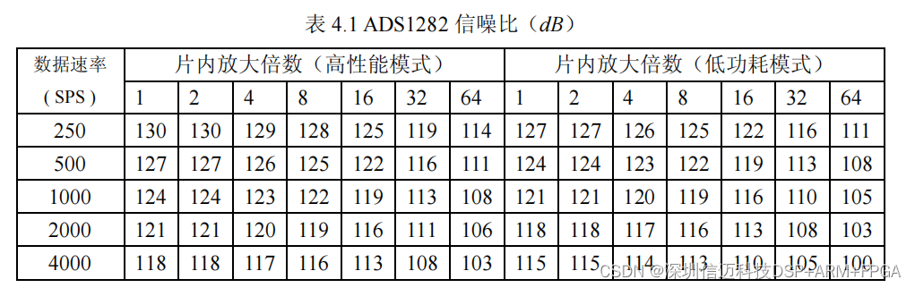 (PGA)的放大倍数下,其有不一样的信噪比,如表 3.1 所示。由该表可知,同