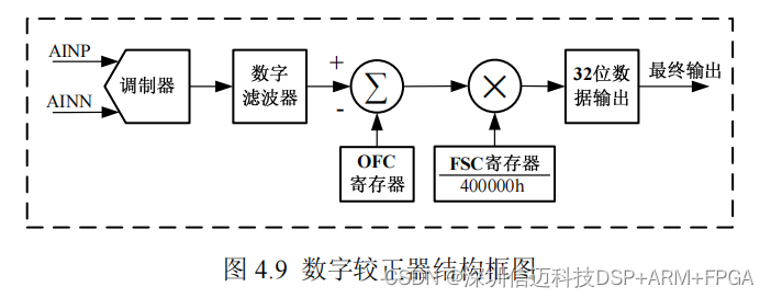 通过配置寄存器 OFC 和 FSC 就可以对原始数据进行偏移量和增益的校正处理。