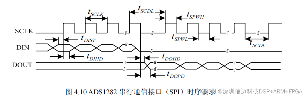 (5)t__DOPD :SCLK 下降沿到一个新的 DOUT 输出的延时,最大为 100 ns;