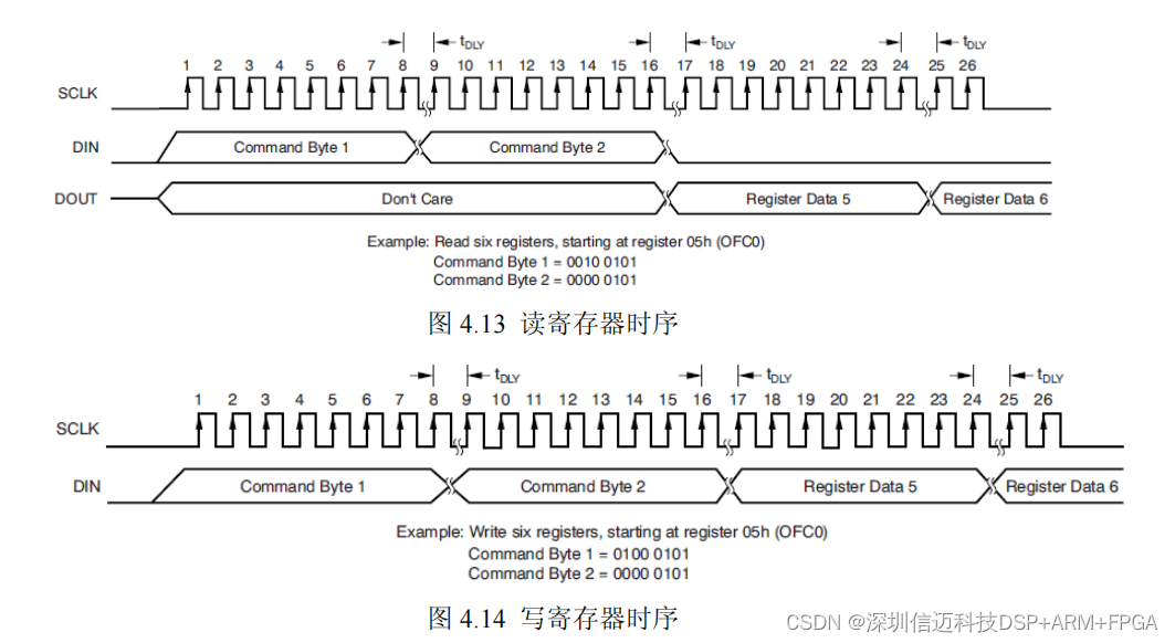 等。图 4.13 和图 4.14 分别给出了读写 ADC 寄存器的时序图。在读写寄存器时要