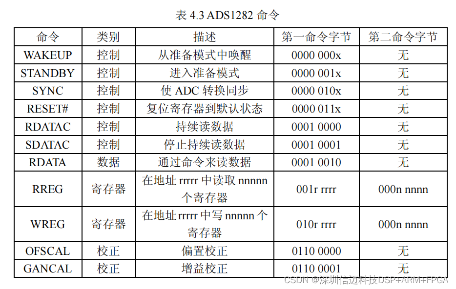 是通过向 ADS1282 发送命令来实现对其进行控制,包括对寄存器的读写操作