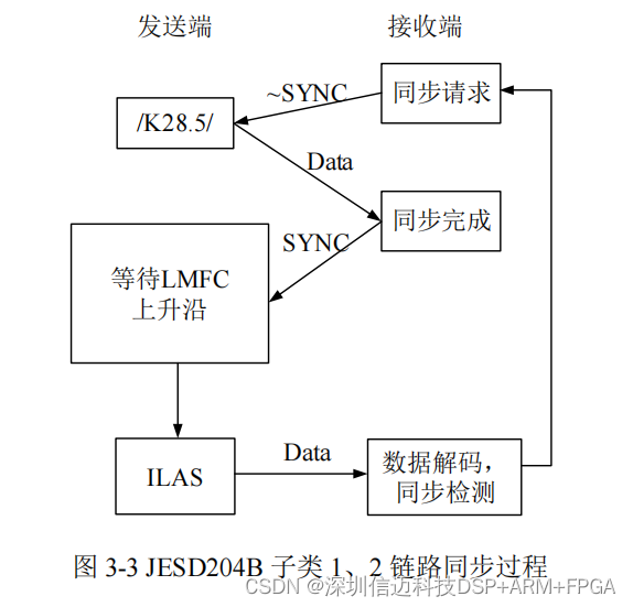 帧时钟。图 3-3 是 JESD204B 子类 1、2 链路同步过程示意。
