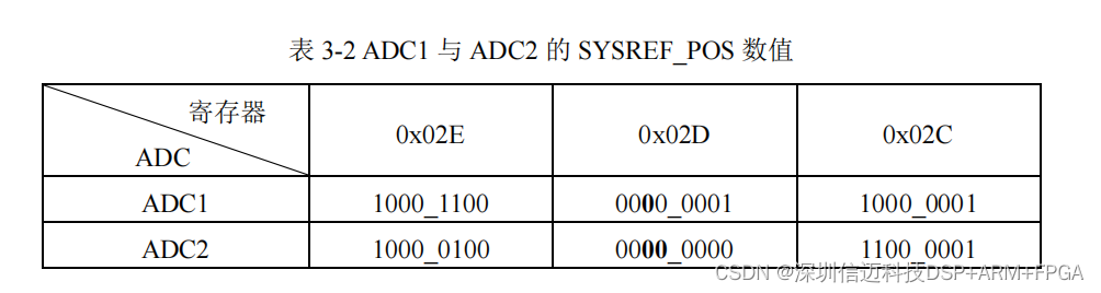 由表 3-2 中 ADC1 与 ADC2 的 SYSREF_POS 值可知,