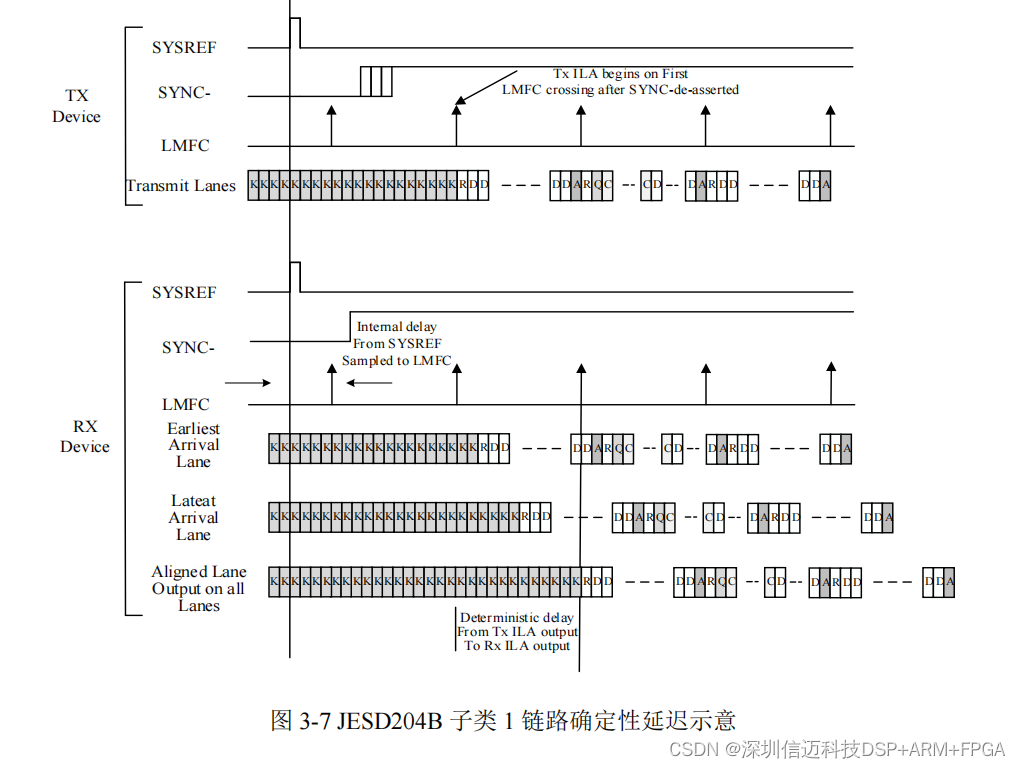 要同步的情况。JESD204B 子类 1、子类 2 则通过确定性延迟实现多链路同步,发