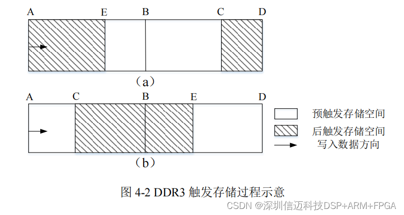 示,假设 DDR3 的存储深度为 AD 段,预触发深度为存储深度的一半(图中 AB