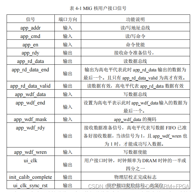 本文采用用户接口实现 DDR3 存储控制,下面介绍用户接口的关键信号及读