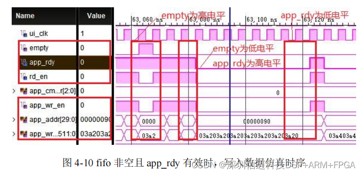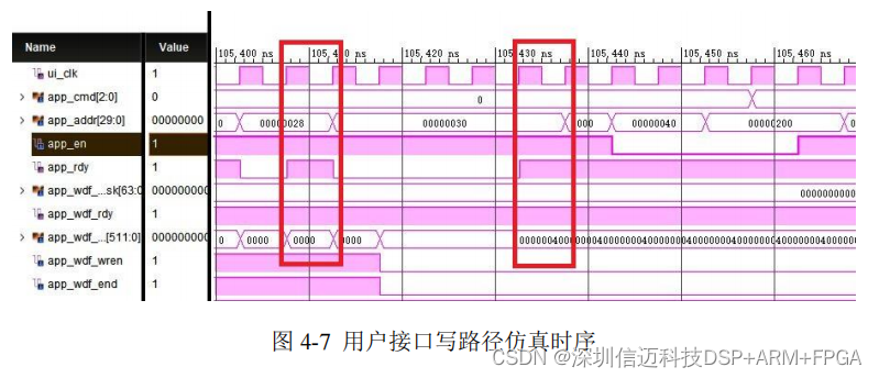 成,即 app_en 与 app_wdf_wren 同时置位为高,对应 app_rdy 与 app_wdf_rdy 信