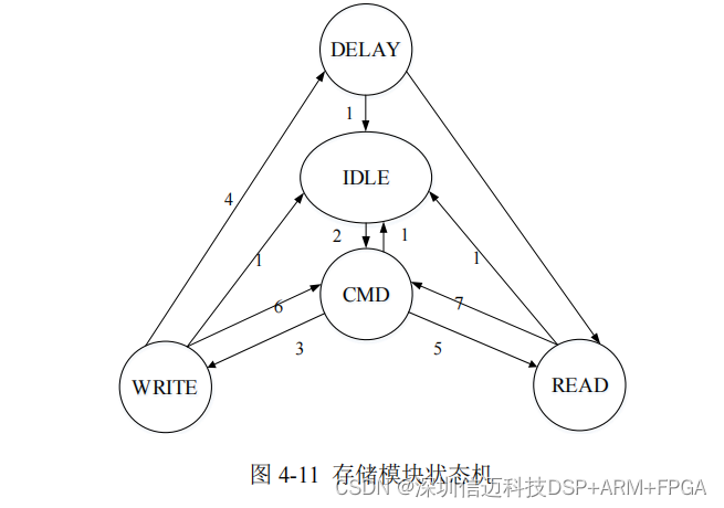进入不同的状态。当条件 7 满足,即完成读过程后,状态机将返回 CMD 状态。