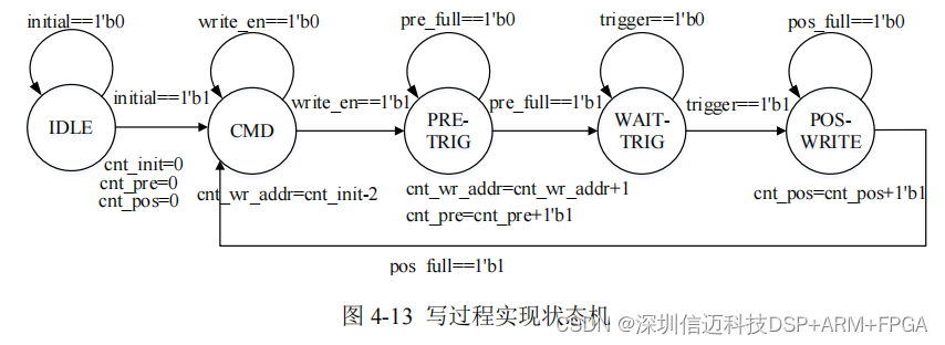 登记将结合写过程状态机及计数器介绍,写过程实现的状态机如图 4-13 所示。