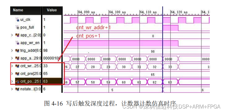 写预触发深度阶段及写后触发深度阶段也采用了计数器对写入数据量进行计数,