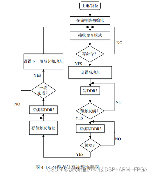 采用 DDR3 分段存储写过程的流程图如图 4-18 所示。首先完成存储模块上电