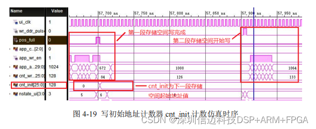 址计数器 cnt_init 值及写地址计数器 cnt_wr_addr 值。写起始地址用于写地址初始