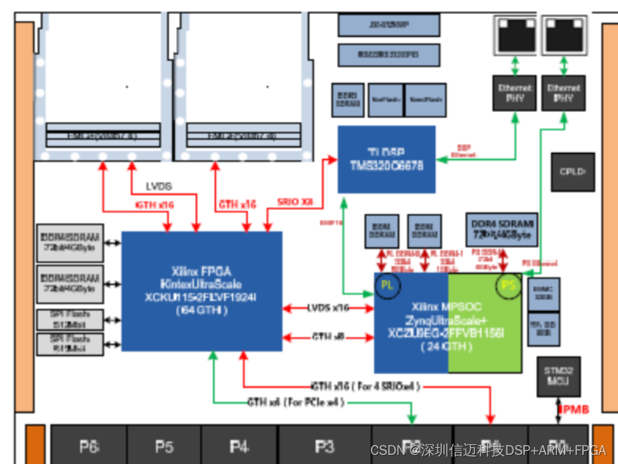 FPGA 与DSP 互联:1 路SRIO x4@5Gbps/lane;