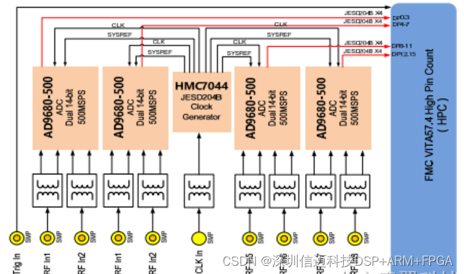 基于AD96808 FMC 模块,支持8 路14-bit、500MSPS/1GSPS/1.25GSPSADC 采集功能