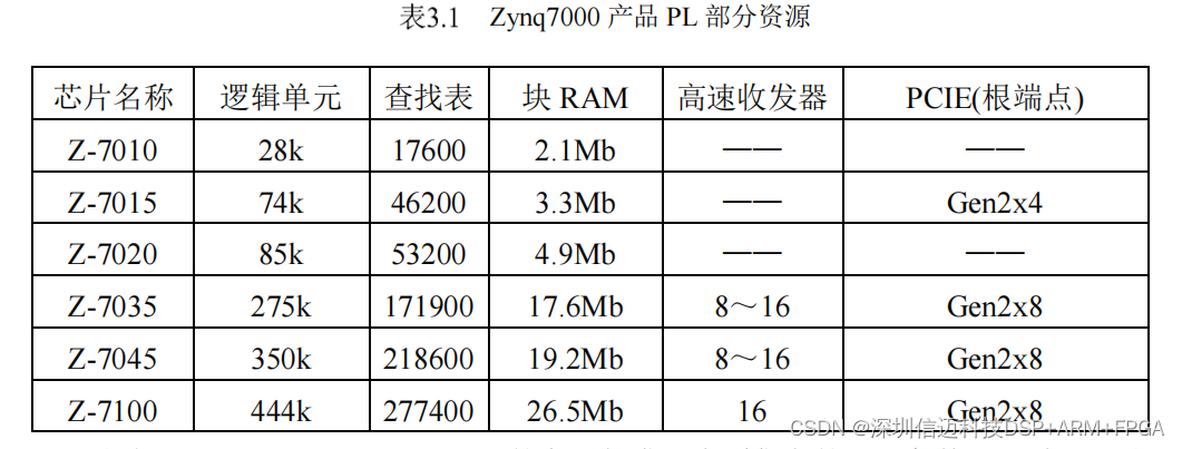 综合以上需求,主控芯片选择 Xlinx 公司 Zynq7000 系列 SoC,该产品分类及 PL