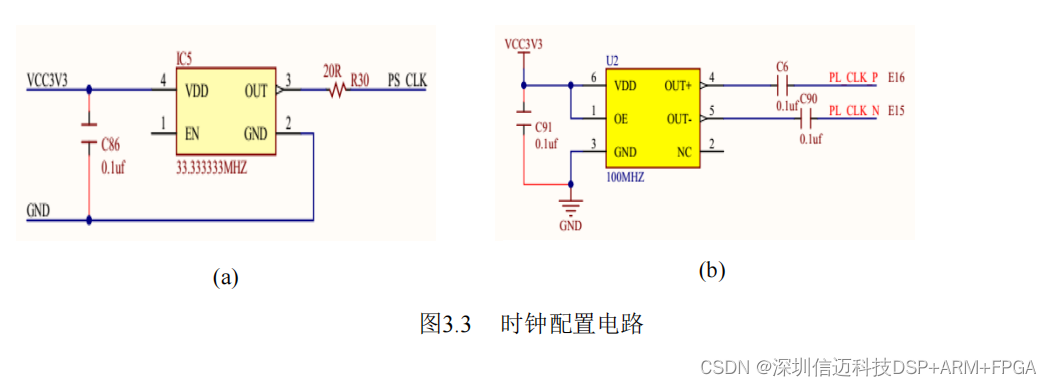 供,该晶振以差分信号的形式输出。PS 和 PL 的时钟电路图如图 3.3 所示,其中图(
