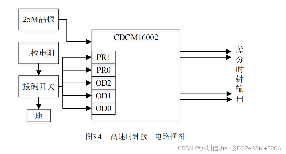 协议和传输速率确定高速时钟的频率。本采集卡采用 TI 公司的 CDCM61002 可编程