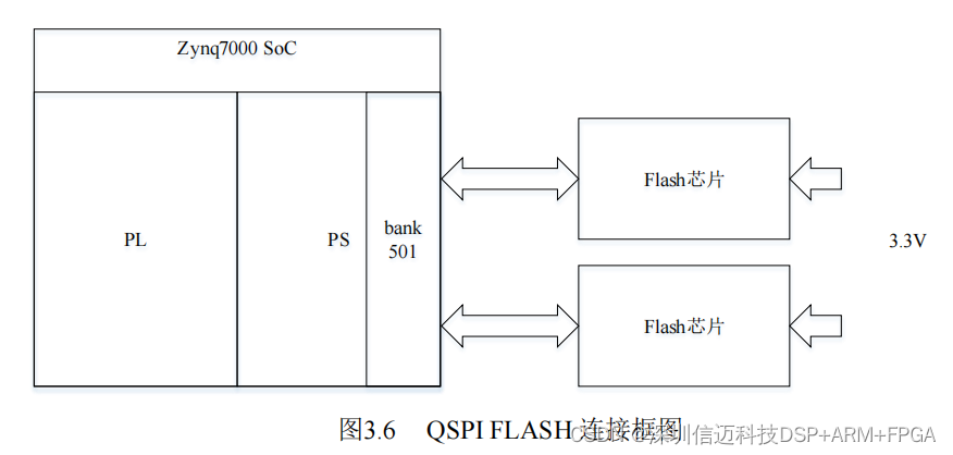 量为 256Mb,读写时钟最高可达 133MHz。QSPI FLASH 连接框图如图 3.6 所示。