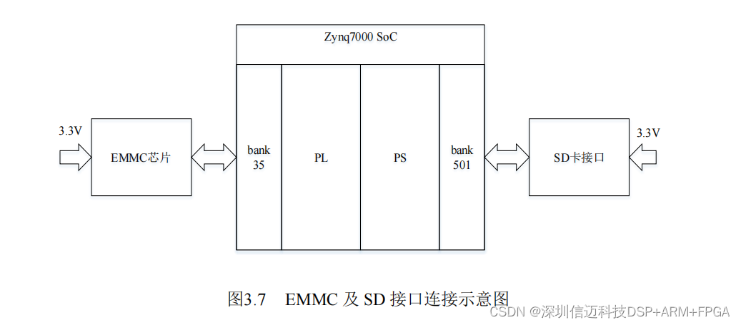 Zynq7000SoC 芯片的 PS 提供 SD 卡、QSPI FLASH 接口和以太网接口,EMMC 连接