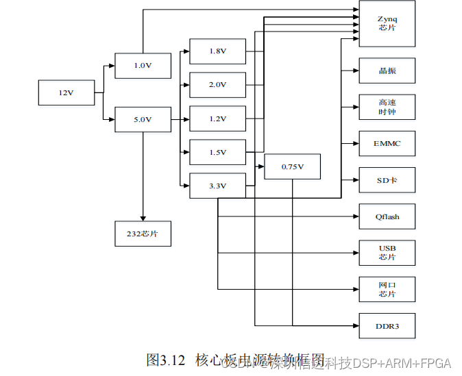 核心板需要 0.75V ,1.0V,1.5V ,1.8V,2.0V,3.3V,5.0V 等不同的电压,供