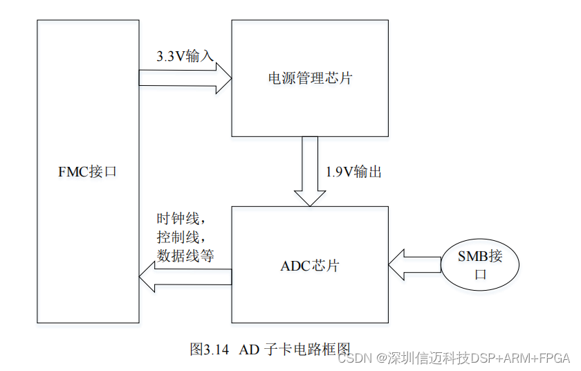 长布线,以满足同步需求。综上所述,AD 子卡的电路框图如图 3.14 所示。