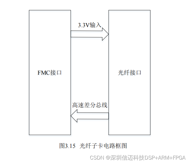 提供。并将 4 对高速差分线引至 FMC 接口,光纤子卡的框图如图 3.15 所示。