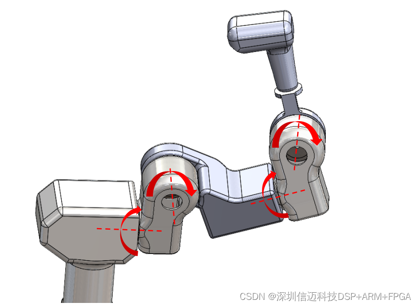 2、手柄内含4个电机旋转副的手柄机械臂,内置16位分辨率旋转编码器记录角位移;