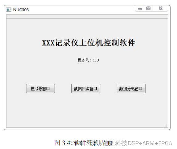开机界面显示软件名称和版本号以及软件功能入口。包括模拟源窗口、数据回读窗