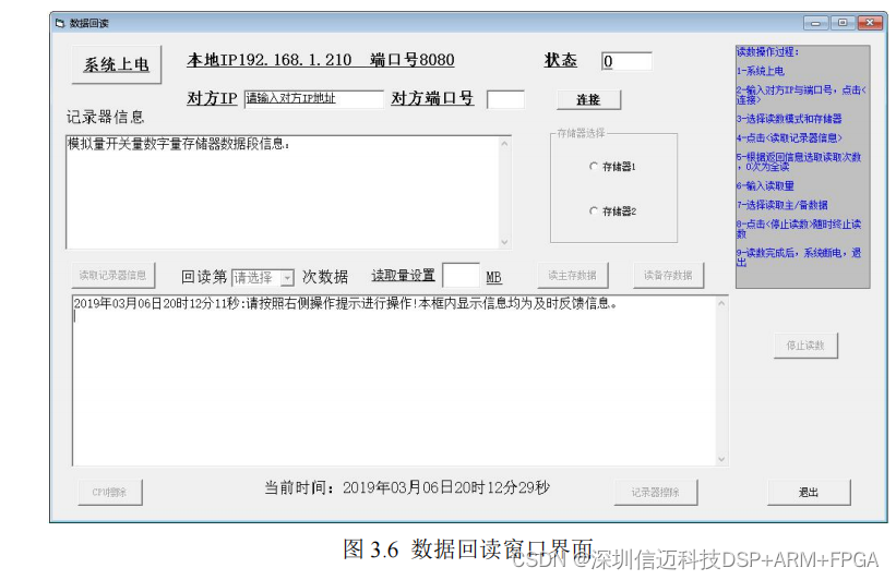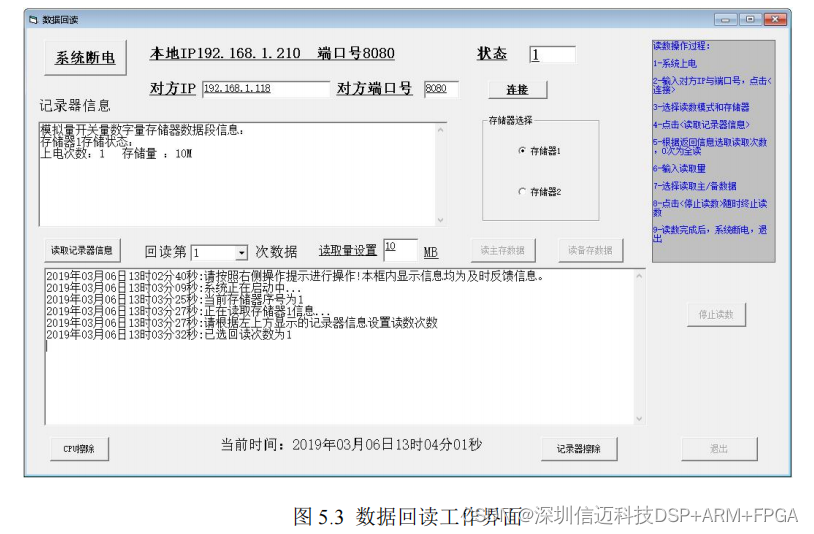 系统工作结束,开始回读数据。在软件数据回读界面,按照提示框内的操作流程进