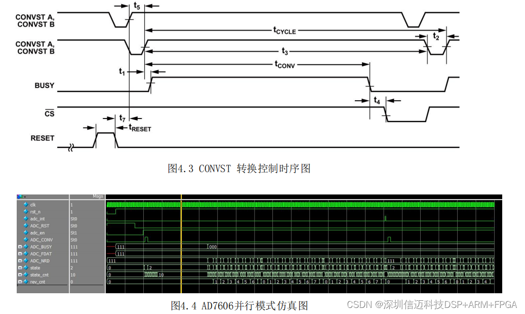 CONVST信号的上升沿时AD转换开启,AD7606内含有的片内振荡器用来实现转换,同时