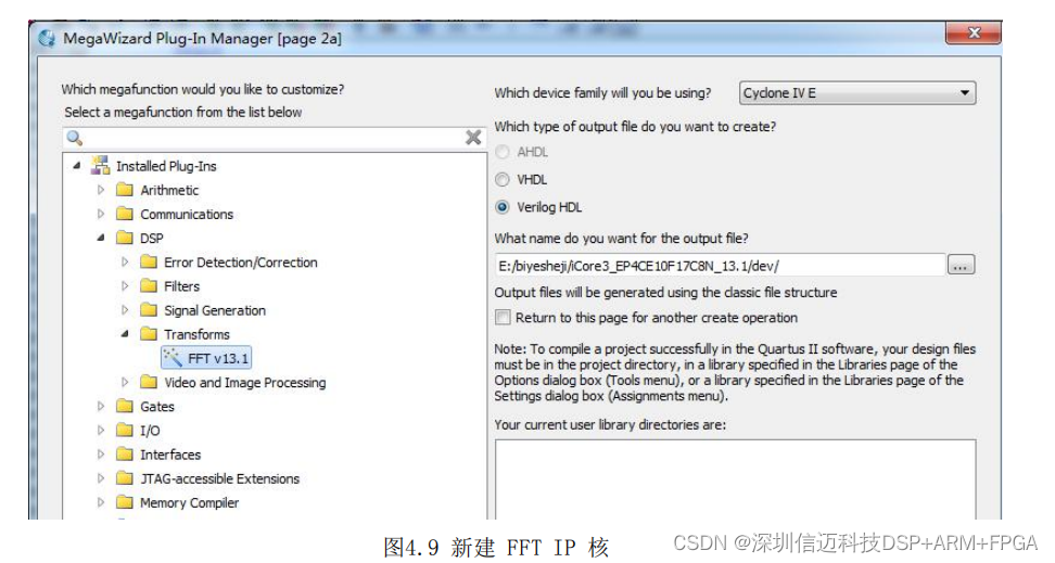 择输出文件类型为 Verilog HDL [47],新建 FFT 如图 4.9 所示。