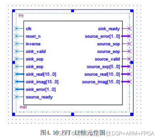16bits。FFT IP核元件图如4.10所示,包含10个输入和8个输出信号: