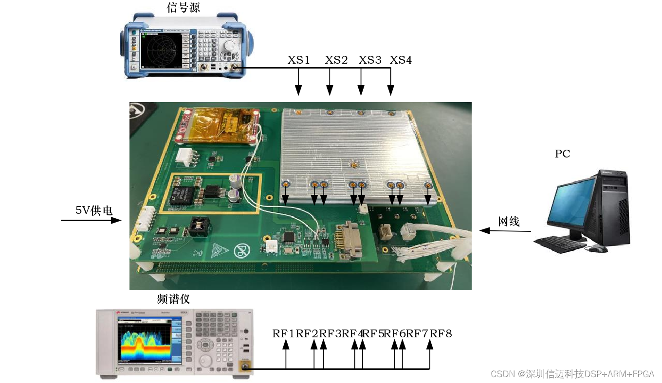 - 信号源输出单音频点1004MHz,功率-20dBm信号源,通过同轴线缆接到