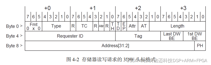数据等信息。TLP 的 Header 长度为 3DW 或 4DW。存储器读写请求事务的 3DW