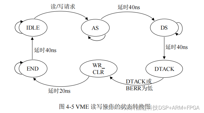 VME 读写操作模块采用状态机来实现,状态转换图如图 4-5 所示。初始状态